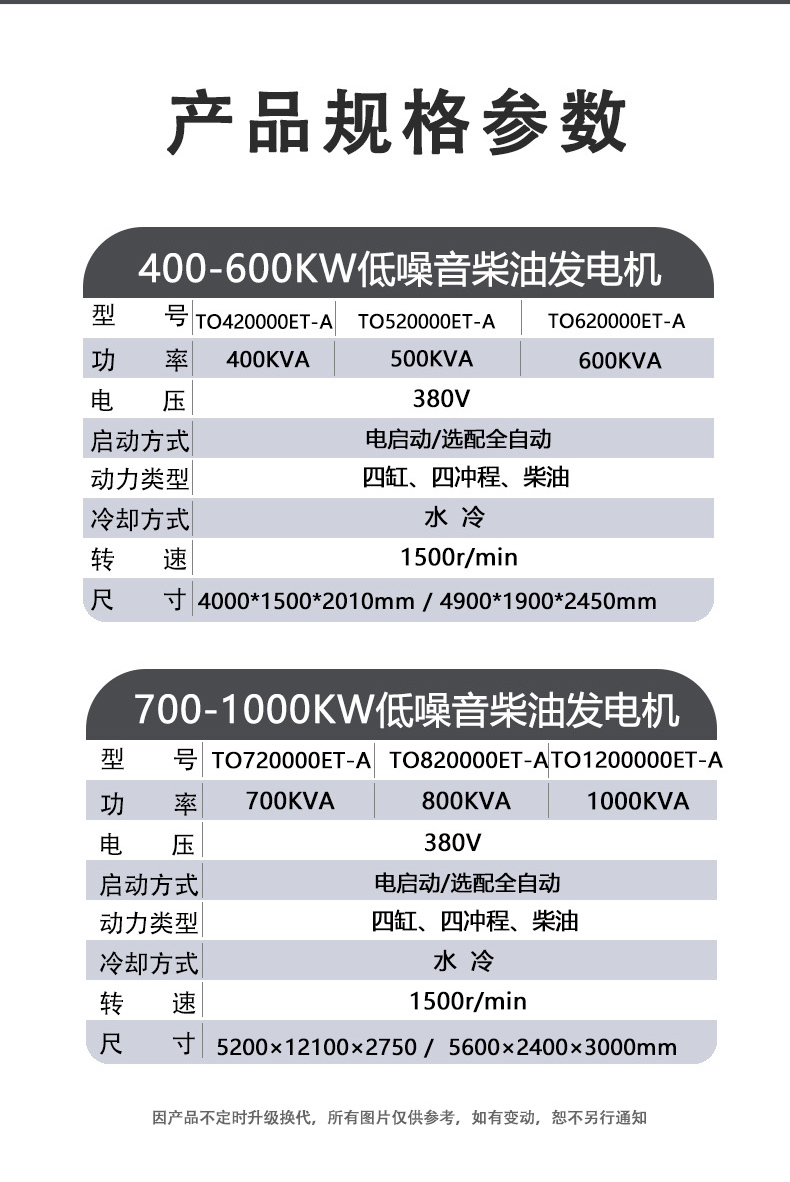 额定功率:700KVA(常用)