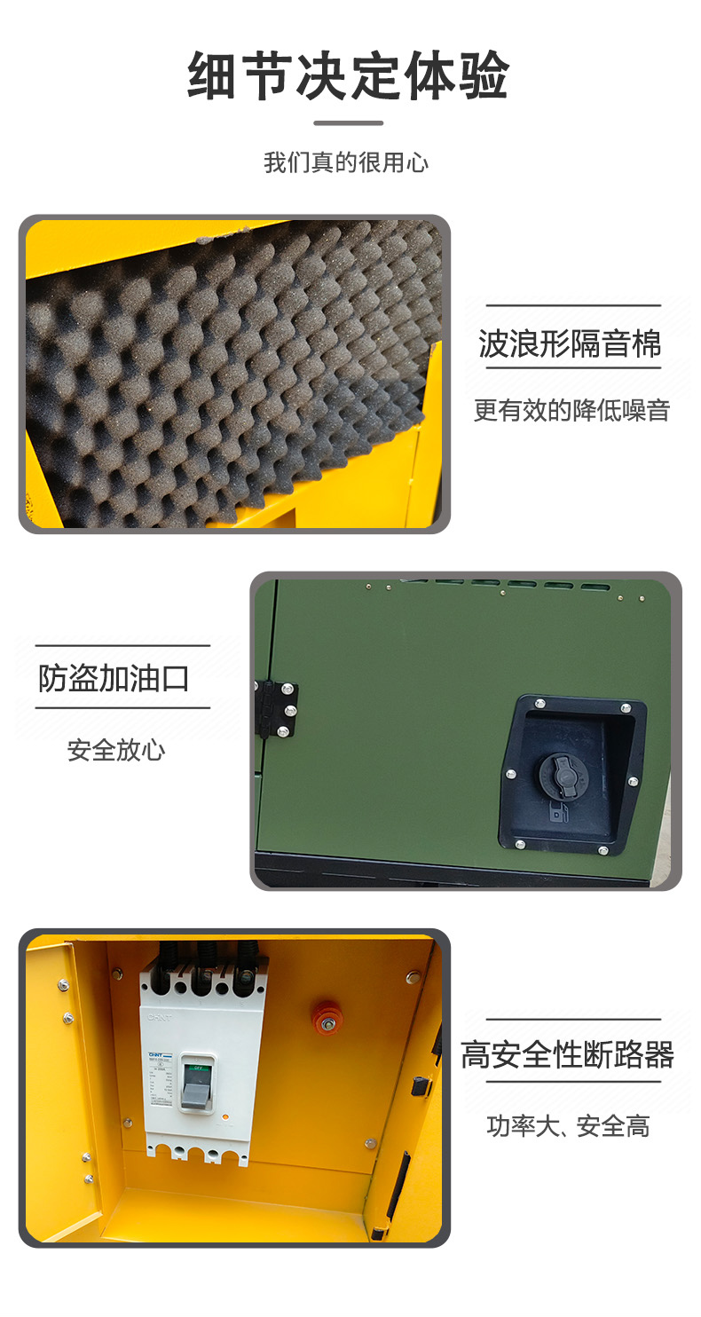 双层钢板夹吸音棉箱体 + 阻抗复合式消声器,7米处噪音控制在85-95分贝。