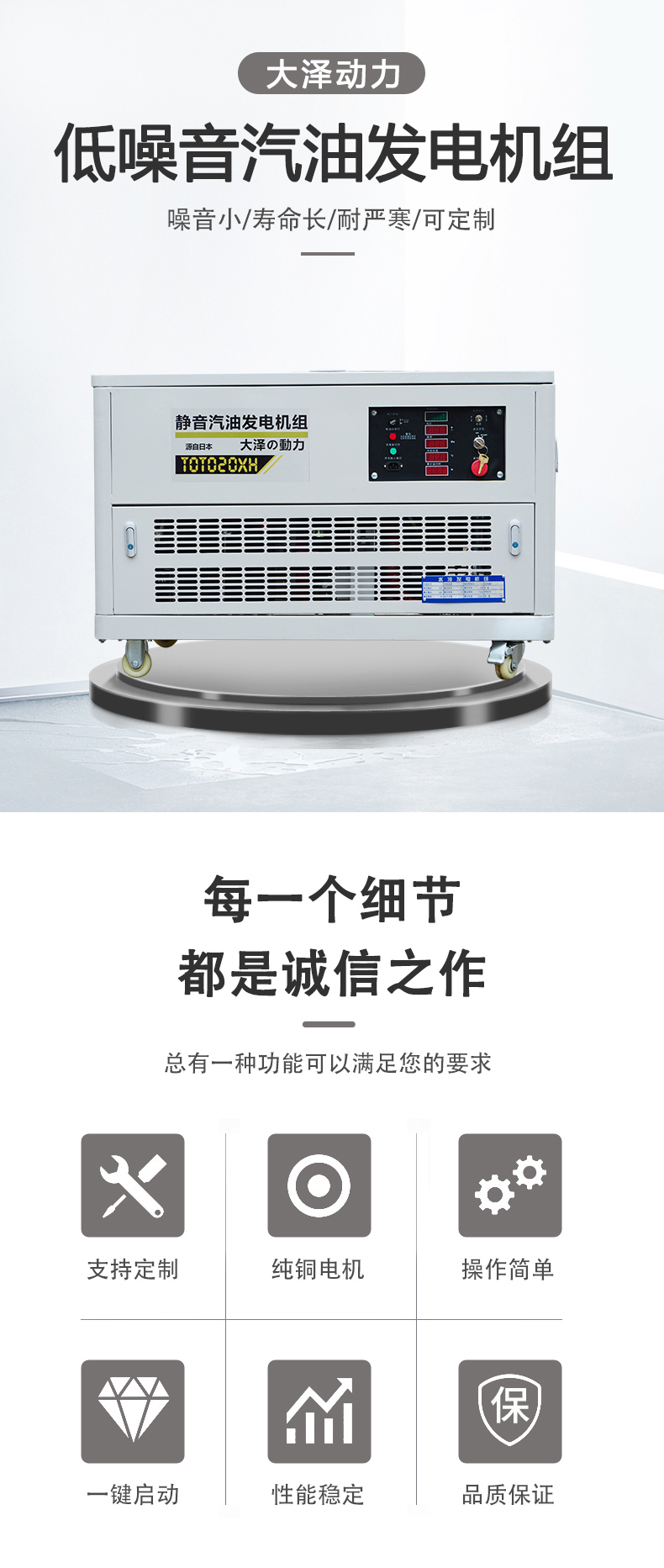 大泽动力40kw静音汽油发电机结构合理,功用牢靠,设备维护便当,可广泛运用于石油开采、各种泵站、加气站和小型电站等有气源场合。厂家主营多燃料汽油发电机、天然气发电机、家用汽油发电机、野外用汽油发电机、嘉定汽油发电机、上海汽油发电机、静音汽油发电机、数码变频汽油发电机、便携式汽油发电机、家用小型汽油发电机、家用便携式汽油发电机、野营汽油发电机、车载汽油发电机。