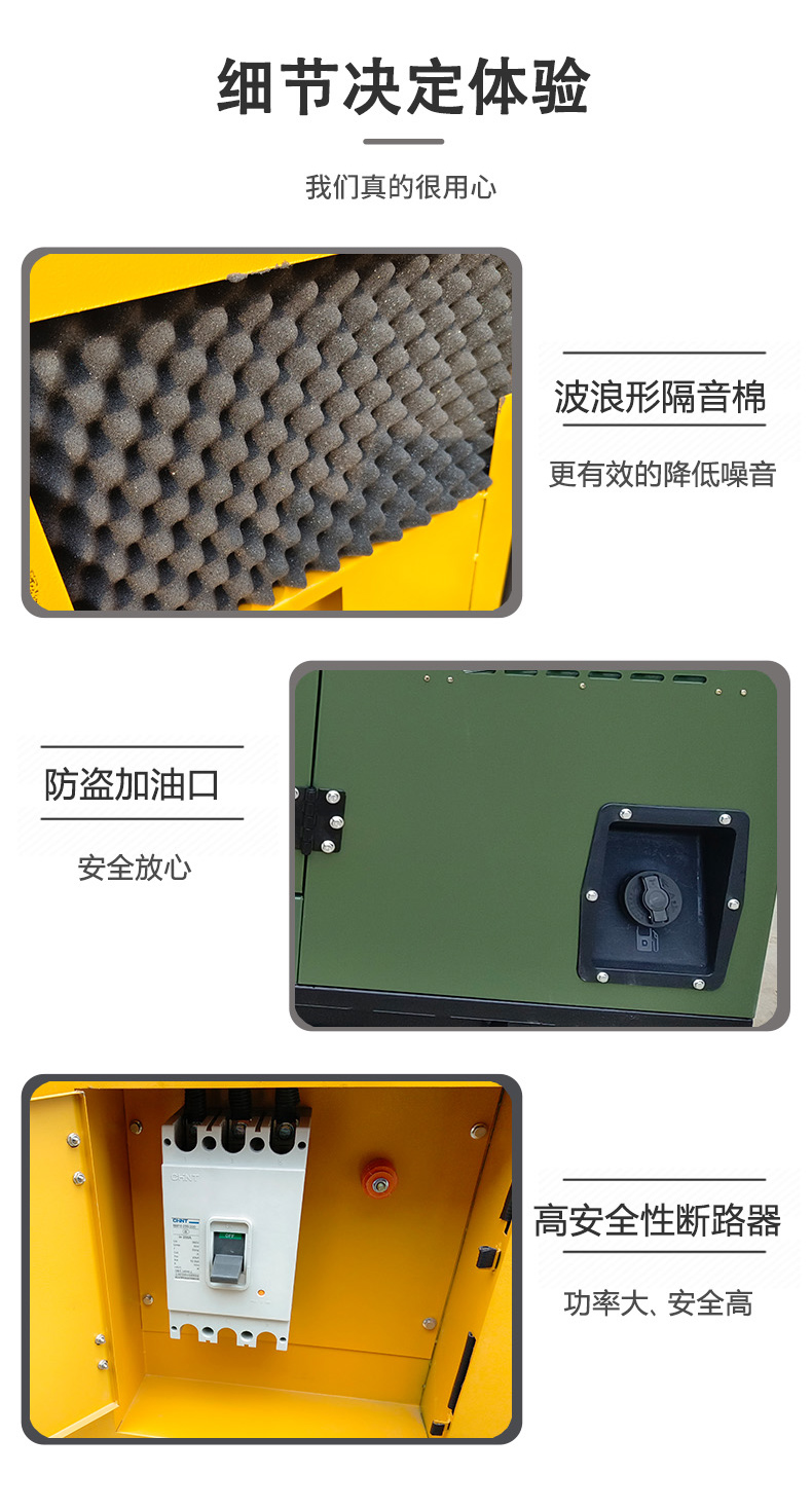 多层阻抗复合式消音结构+高密度隔音棉箱体,7米处噪音控制在68-79分贝。