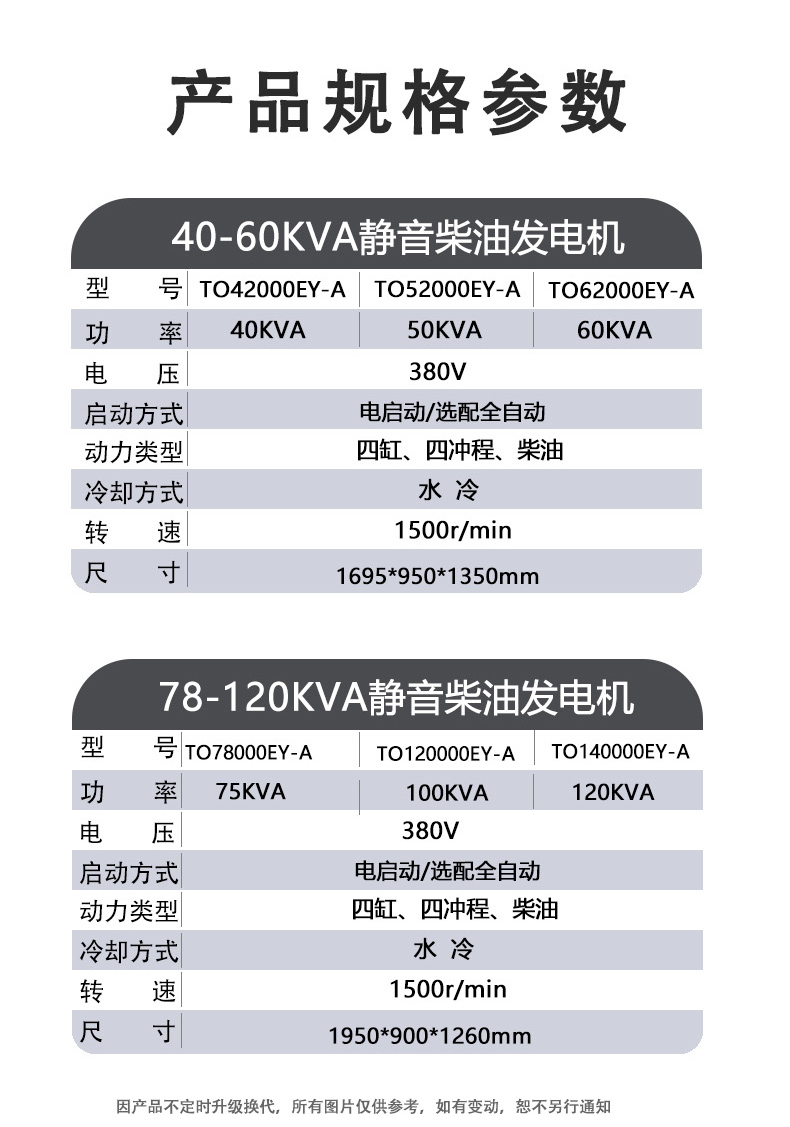 电压输出:支持380V/220V双电压,三相四线制,功率因数0.8/1.0。